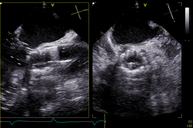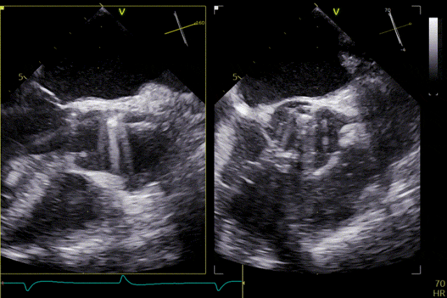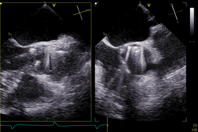 在超聲引導下,手術團隊高效且精準地完成了瓣膜的定位、釋放及功能評估。手術過程順利,夾持件入竇與定位一氣呵成,三枚夾持件的釋放與錨定位置均與術前評估完全一致,器械操作時間約5分鐘。術中超聲評估顯示無瓣周漏,血流動力學表現穩定,手術順利完成。